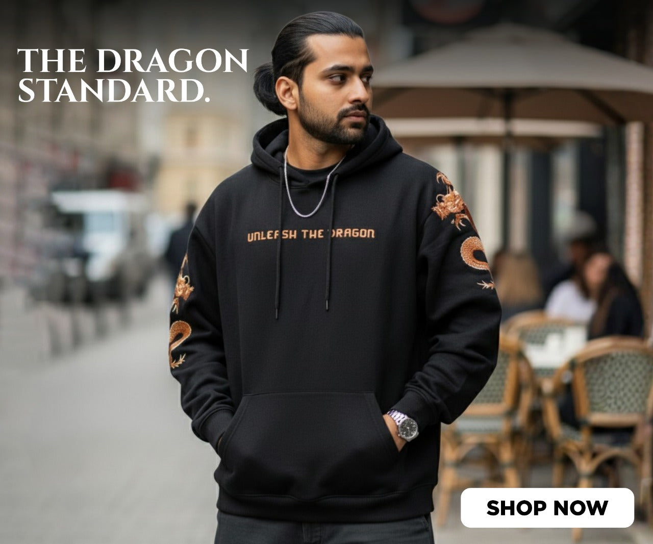 Forget what you know about jackets. The Samurai Jacket is an artistic fusion, inspired by the rich cultural heritage of Japan and China , crafted into an oversized modern bomber silhouette. Its most striking detail is the coiled red dragon on the back, its fierce form symbolizing power, protection, and transformation, a revered figure in both cultures. On the front, traditional red Chinese knot toggles replace standard buttons, paying homage to centuries old knotting techniques. Flame-like motifs run along the sleeves, a statement look that’s impossible to ignore.