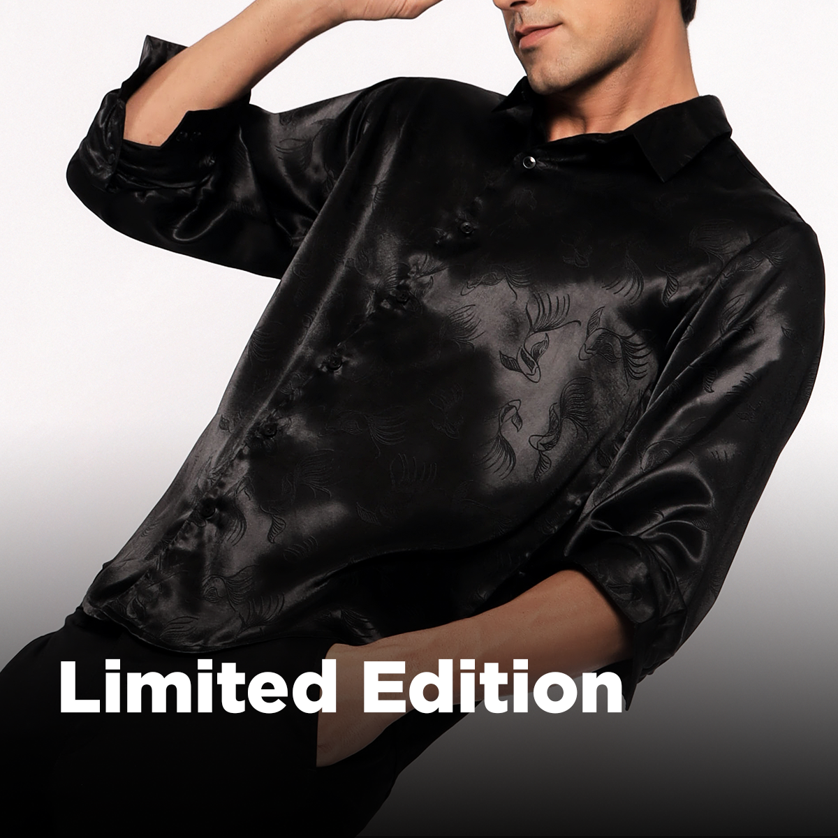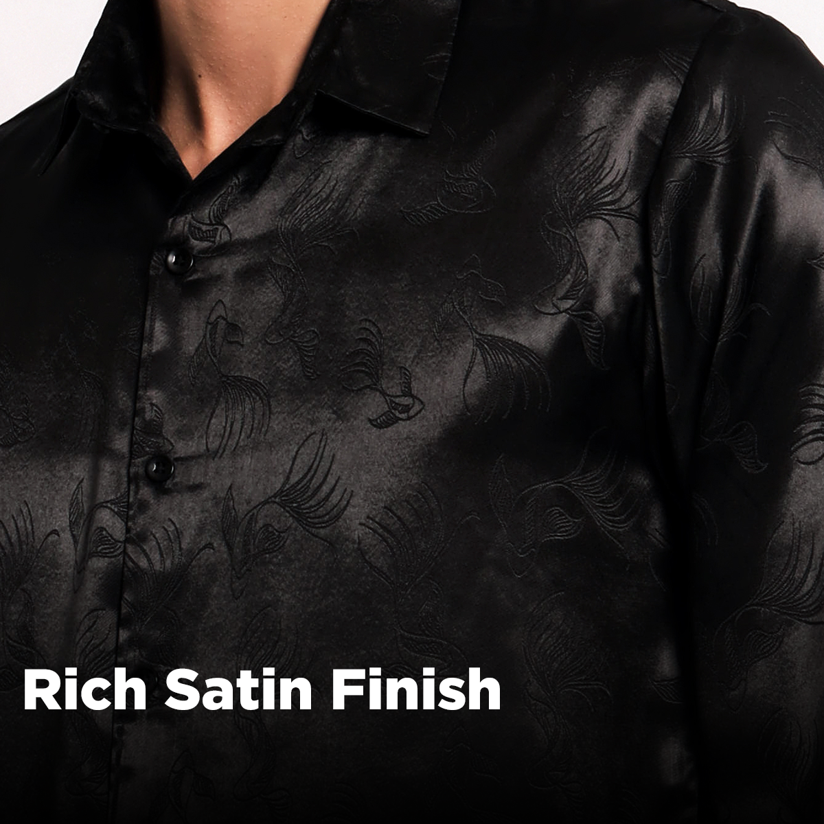 Make a statement in this black Jacquard Shirt, featuring a sleek color-on-color fish pattern print. Full sleeves and minimal sheen give it a touch of luxury.