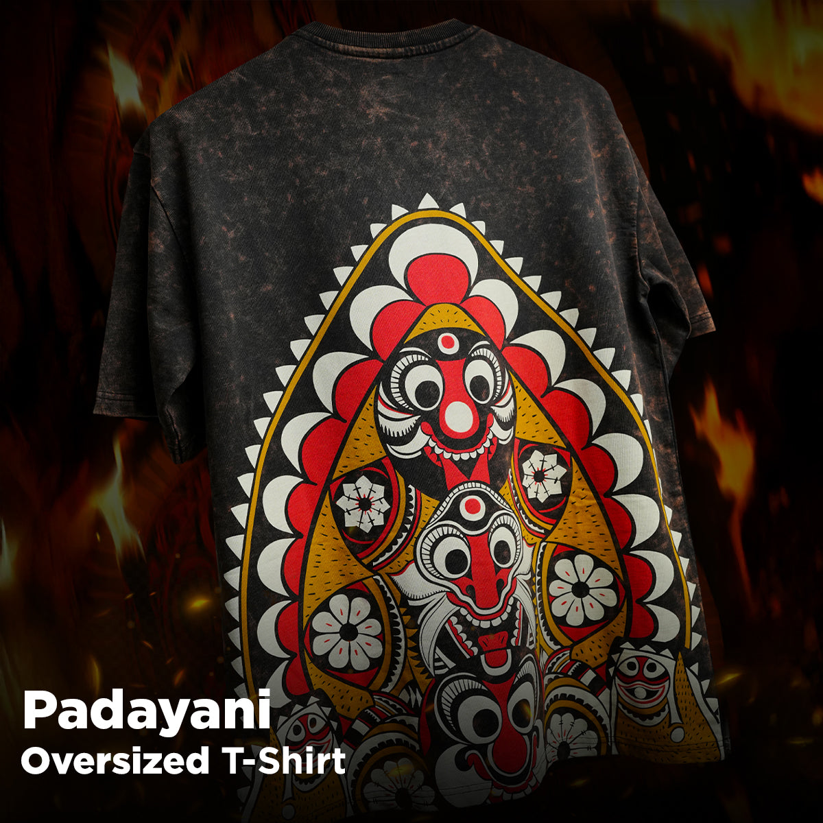 Vibrant Padayani art, detailed embroidery, and a unique acid-washed finish all in one. A fusion of tradition and trend, perfect for those who love cultural fashion.
