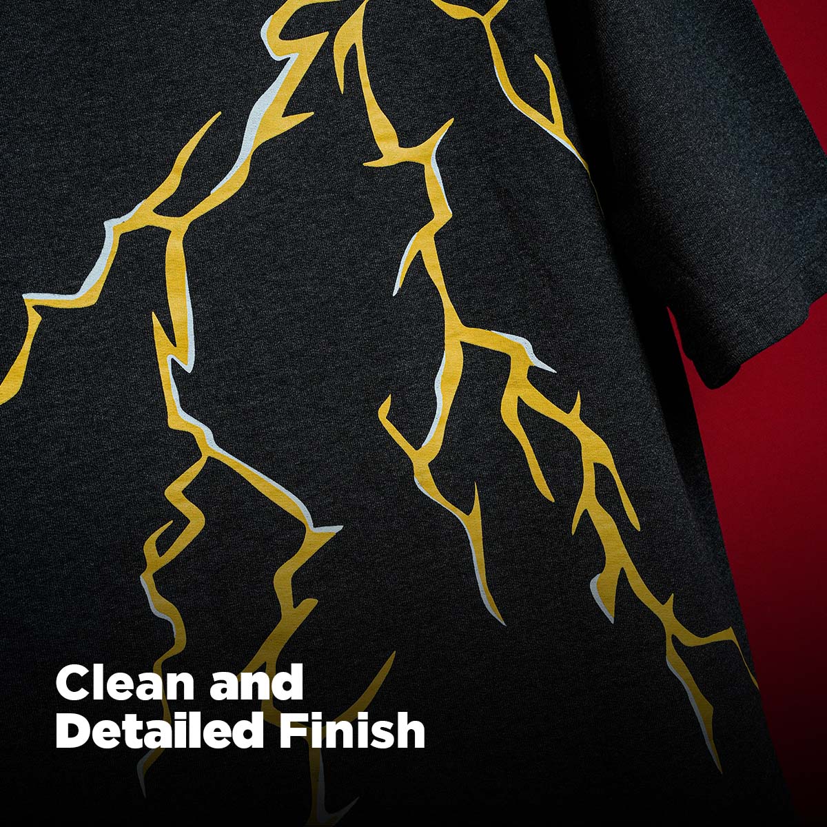 Women's oversized tee with a thunderous Zeus-inspired design and lightning prints. A must-have for mythology lovers and perfect for those who admire strength and style in one piece.