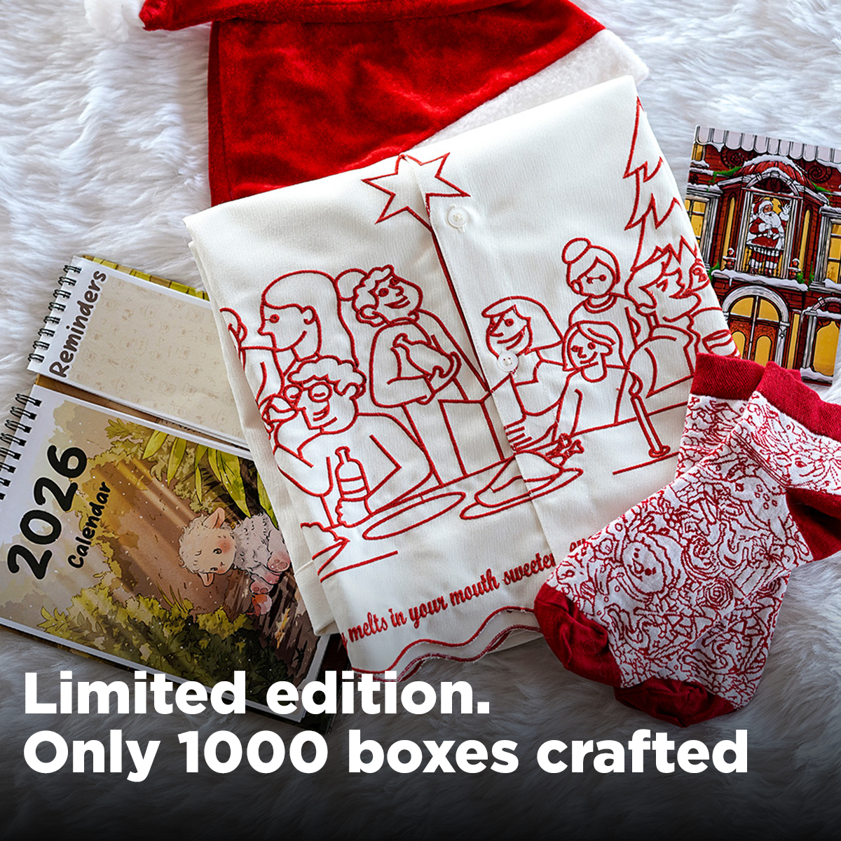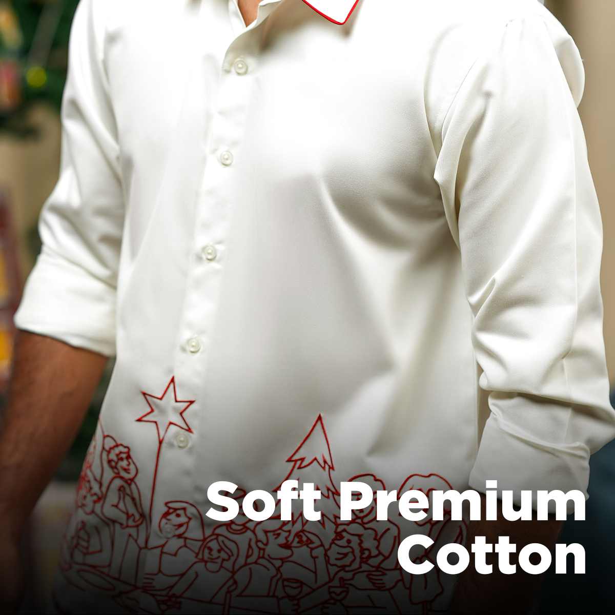 Celebrate the joy of togetherness with our Feast Embroidered Shirt, featuring a festive dinner scene delicately illustrated in red thread along the hem. A perfect choice for holiday gatherings and elegant festive wear.