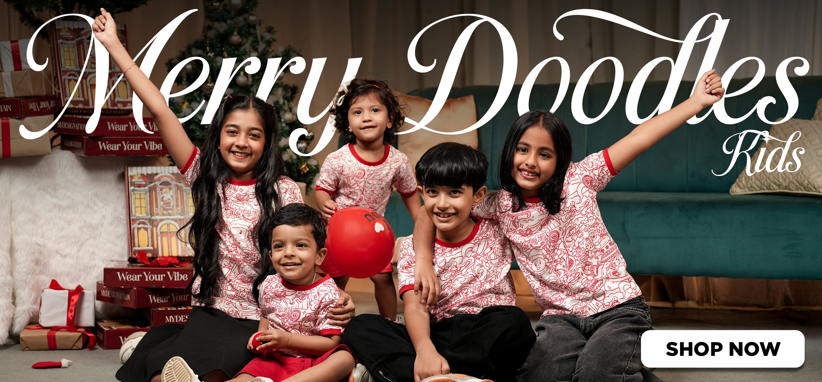 Regular Fit Merry Doodle Kids TshirtKids Printed T-shirt