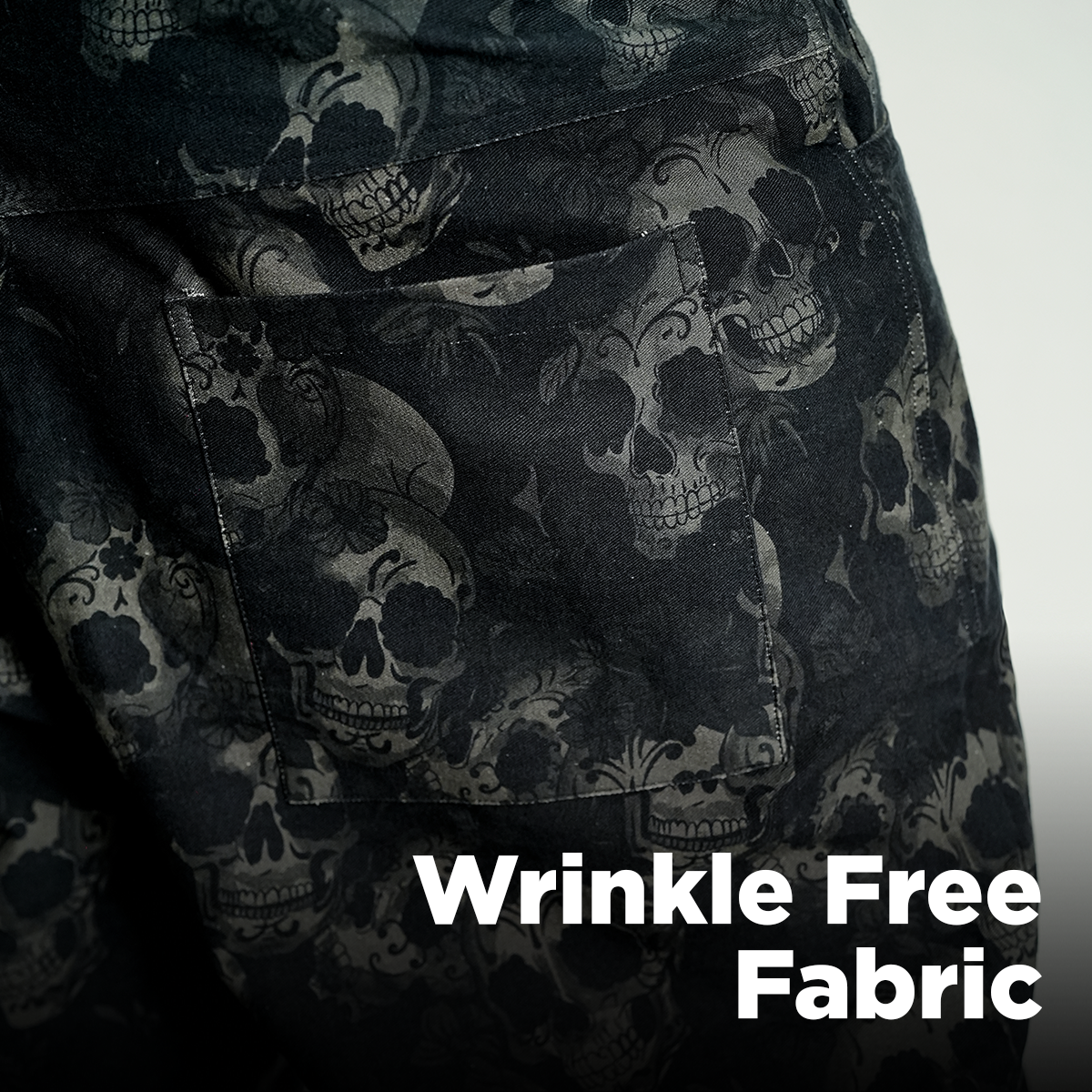 Creep it real this Halloween season in pants with ghostly all over tonal skull and floral prints that blends into a deep black base, crafting the perfect eerie yet stylish Halloween statement.