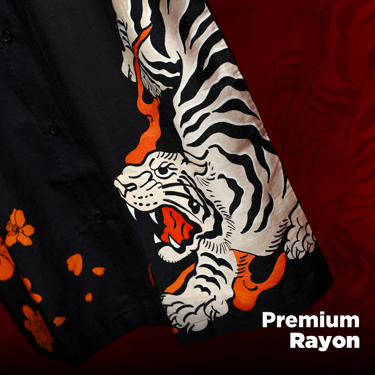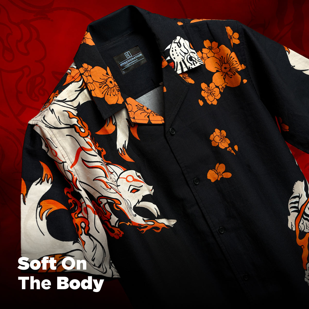 A unique piece with a Japanese folklore-inspired textured painting print, the Kairo Shirt in black offers a relaxed fit for a stylish, comfortable look